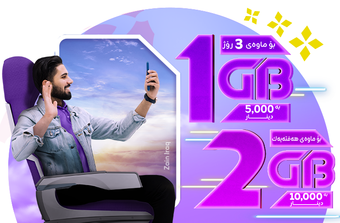 | پاکێجی رۆمینگی 2 كيكابايت | 2 گيگابايت | 7 رۆژ | 10,000 د.ع. | Zain,STC,Mobily | زیاتر |